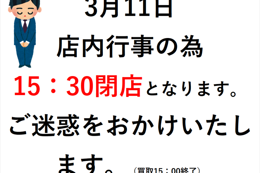 3/11 営業時間変更のお知らせ